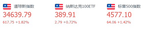 美股周四收高,挽回了周三的跌幅,周期性板块引领市场反弹。道指涨1.82%,报34639.79点;纳指涨0.83%,报15381.32点;标普500指数涨1.42%,报4577.10点。