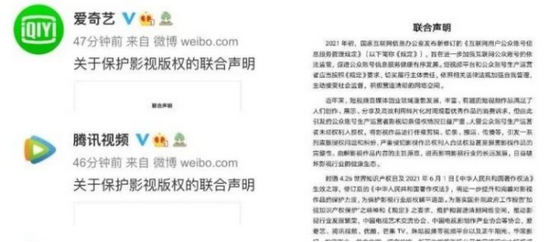 针对此现象,今年四月初,腾讯、爱奇艺等长视频平台联合七十余家影视机构抵制短视频“二次创作”,呼吁短视频平台尊重原创、保护版权,未经授权不得对相关影视作品实施剪辑、切条、搬运、传播等侵权行为,但似乎并没有什么太大效果。