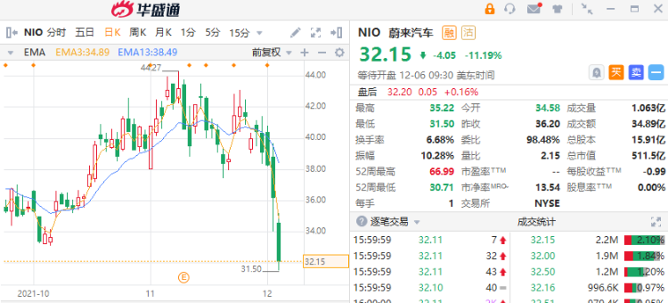 截止发稿,蔚来(NIO)从四个交易日下跌19.60%,报收32.15美元。