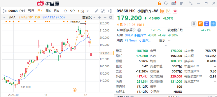 中金公司研报称,小鹏G9将帮助其公司进一步加速向海外市场拓展进度,并维持目标价271港元,并重申维持此前的盈利预测和“跑赢行业”评级。该公司表示,目前小鹏汽车工厂已实行双班生产制度,公司订单充沛,在供给改善和产能爬坡带动下,12月交付量继续向好。
