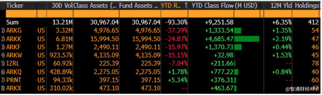 Rosenbluth指出:“ARK Space Exploration & Innovation ETF在2021年第一季度末推出,时机很好,当时ARK是ETF界的宠儿。”尽管最近遇到了困难,但投资者的忠诚度一直很高。ARK Innovation ETF的资产下降了120亿美元,这主要与市场下跌有关,自2月份该基金资产达到280亿美元的峰值以来,只有约4亿美元的净值流出了该基金。