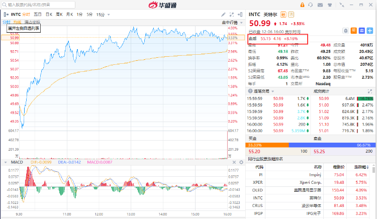 当地时间周一晚间,美国当地媒体援引知情人士报道,半导体制造商英特尔计划将旗下自动驾驶业务Mobileye分拆上市,预期市值在500亿美元以上。受此消息影响,公司股价盘后大涨8.16%。