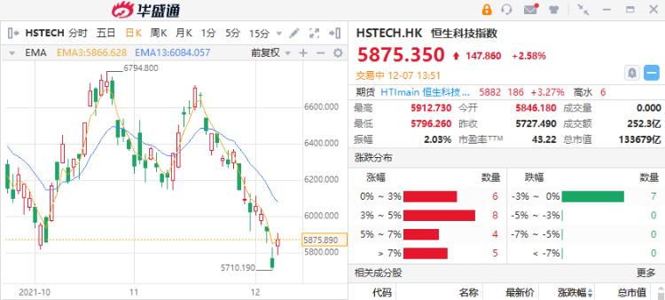 恒生科技指数周二出现大幅反弹,截止发稿,该指数上涨2.58%。该指数周一曾创下自指数推出以来的新低。