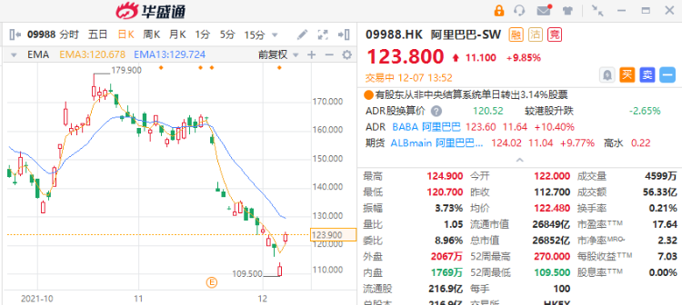 在美上市的中概股周一集体反弹,尤其阿里巴巴(BABA)大涨10.4%,报收123.6美元。这也是该公司近日创下年内低点之后一次颇为明显的放量反弹。这对近期一直受中概股拖累的港股科技股而言,无疑是一个利好因素。