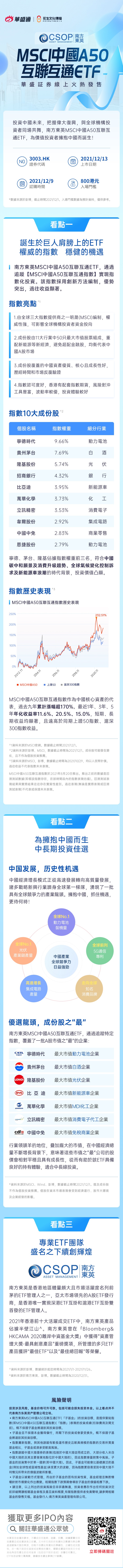 南方東英MSCI中國A50互聯互通ETF( $03003.HK ),於12月9日在華盛証券線上火熱發售 ,並於12月13日正式登陸港交所,入場門檻為800港元。