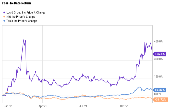 Lucid $LCID 公司在2021年达成了不少的成就。比如,其已经开始批量生产和交付Lucid Air Dream Edition轿车、被MotorTrend评为2022年年度汽车,并通过了环境保护署(EPA)超800公里的续航里程评级。因此,大量资金涌入了该股,Lucid股价今年最高时从低点涨超3倍。