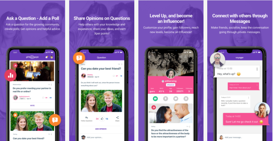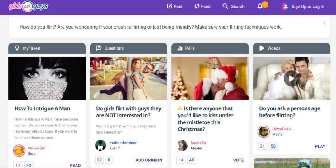 简单来说,GirlsAskGuys 是一个支持用户或实名或匿名向异性用户提问的平台。用户可以就自己对异性的认知、情感矛盾、婚礼、婚姻家庭、运动健身、送礼物等等问题向异性提出自己的困惑或疑问,与此同时也可以发布“民意调查”,看看大多数用户的选择。