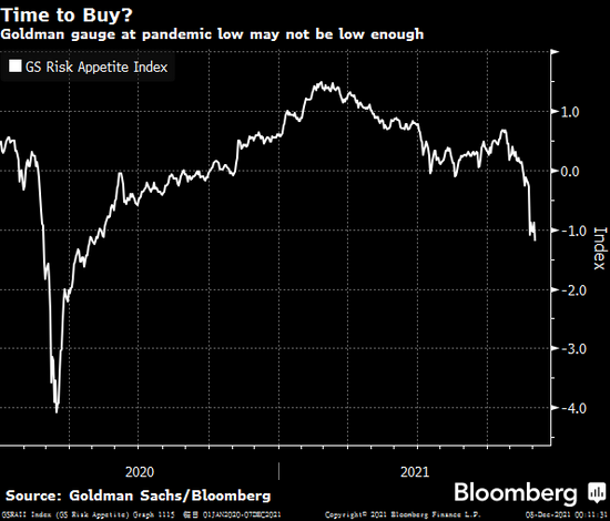 高盛认为,在抛售潮压低了从大型科技股到比特币的各种资产后,高盛风险偏好指标已跌破零,但仍有可能进一步走低。