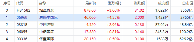 华盛资讯12月8日消息,港股烟草板块持续拉升,截至发稿,比亚迪电子涨5.53%;思摩尔国际涨4.55%,报46港元每股,成交额1.42亿港元;中国波顿涨3%,华宝国际、中烟香港跟涨。