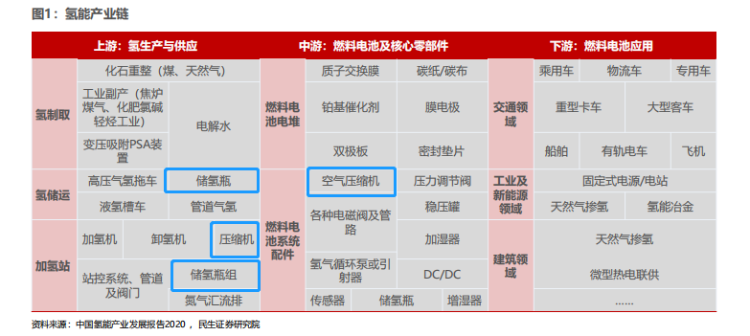 而上游的氢生产与供应又包括氢气的制取、储运以及加氢站的建设等。