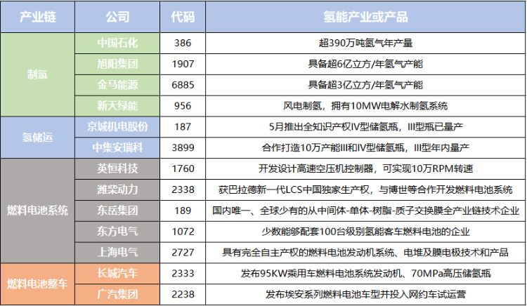 目前在港股上市的氢能概念股总共有13家,几乎涵盖了整个氢能产业链。
