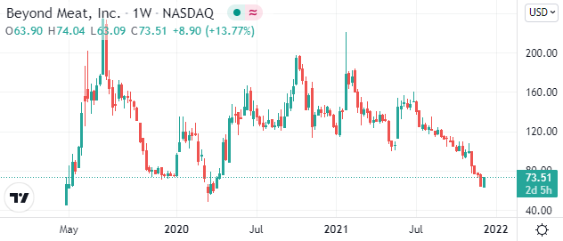 泰森食品这招“釜底抽薪”让Beyond Meat股价长期以来都不太好受。截至周二,Beyond Meat股价在今年已经下跌了43%,市值也跌至近45亿美元。