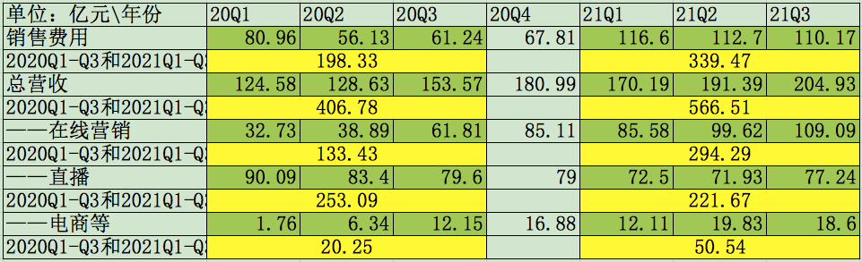 如今在快手的秀场和电商直播中,排名靠前的已鲜有此前的六大家族身影;而直播付费用户规模也从2020年的6000万降至目前的4500-4600万,打赏用户的流失很明显;而2021Q3快手的在线营销业务已突破单季度100亿元关闸(而随着公域流量的增长,这块业务还能够保持高于行业的增长率);年中时期其每日活跃主播数保持在190万水平。