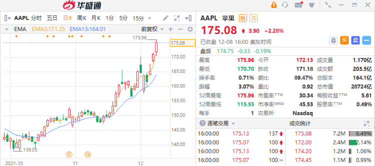 在奥密克戎(Omicron)变异病毒引发全球恐慌之际,投资者押注苹果品牌价值并将其视为相对安全的避风港,推动了苹果这波强劲涨势。