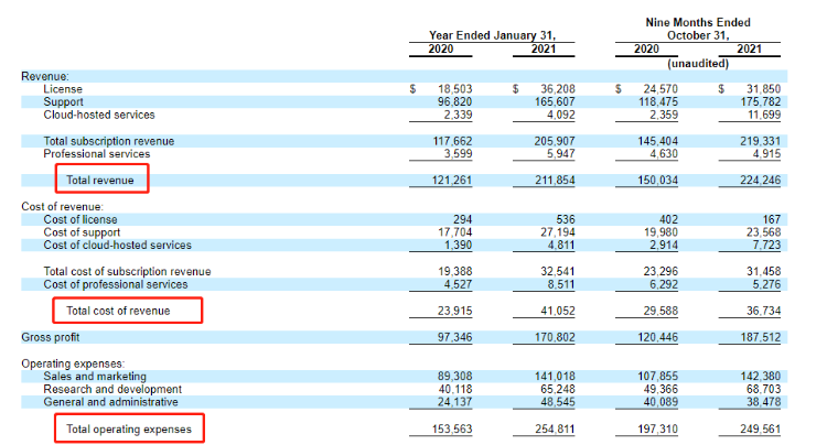 财务表现方面,HashiCorp收入和毛利润不断增长,但同时,成本和经营亏损也在不断增加。招股书显示,HashiCorp今年前10个月,总收入为2.24亿美元,同比增长49.5%;同期毛利润为1.87亿美元,同比增长55.7%;收入成本达3673万美元,营运成本达2.5亿美元。