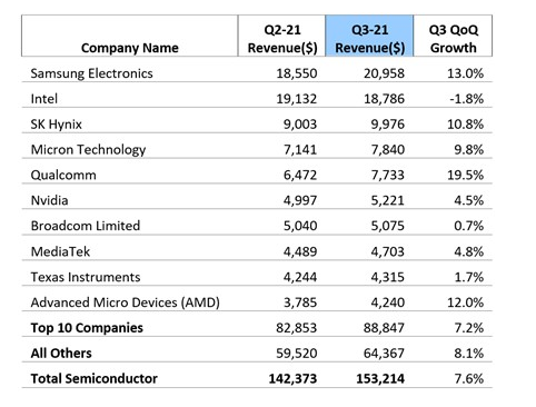 值得注意的是,据市调机构Omdia最新报告,由于供应短缺、季节性购买周期以及内存芯片的强劲需求的影响,2021年第三季度半导体行业营收较第二季度增长7.6%,达到1532亿美元,创单季新高,并首次突破1500亿美元。强劲的需求,有望给英特尔带来更多的收入。