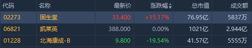 罕见病医药企业北海康城-B低开19.54%,最新总市值超41亿港元,不计手续费一手账面浮亏2380港元。
