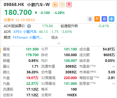 华盛资讯12月10日消息,港股汽车股盘初走低,小鹏汽车跌超4%,理想汽车跌近2%,比亚迪股份、吉利汽车、广汽集团跌近1%。
