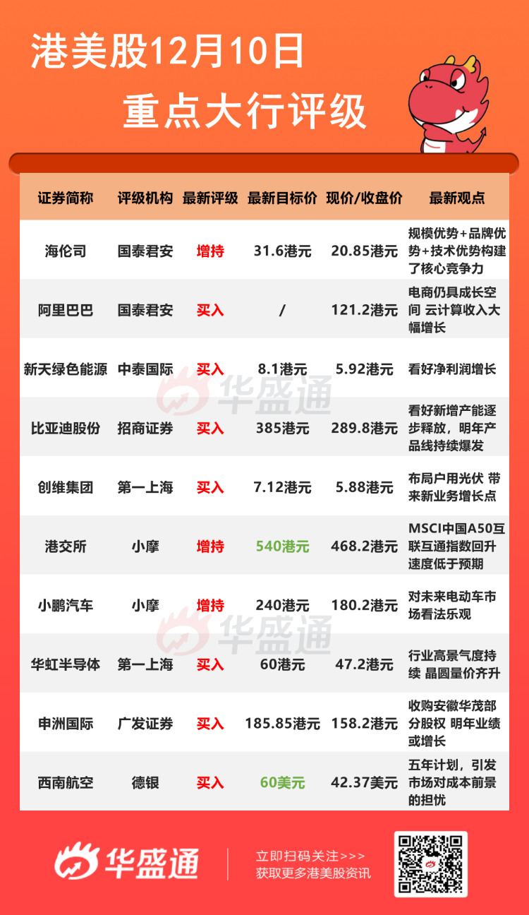 国泰君安国际发布研究报告称,阿里巴巴-SW是中国电商龙头企业,核心业务扎实;在新兴直播电商赛道占有重要地位,未来随着行业扩张将持续受益,第二大业务云计算服务属于国家重点发展领域,未来成长空间巨大,看好未来阿里巴巴业绩的持续增长,推荐“买入”。
