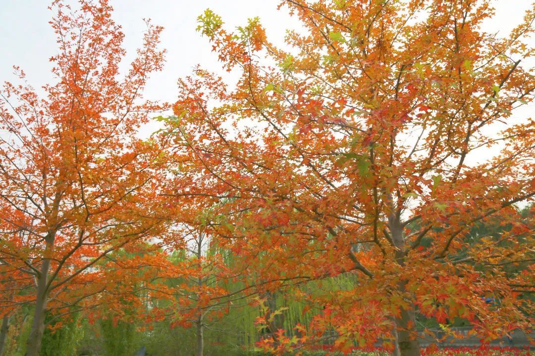 北美枫香是金缕梅科枫香树属植物,大型落叶阔叶树种,树高可达15-30米,干性挺直,株形伟岸,寿命在100年左右,通常有木栓质翅,叶互生,宽卵形,叶长10-18厘米,叶柄长6.5-10厘米,春夏叶色暗绿,秋季叶色有黄色、紫色或红色多色混合。喜光照,在潮湿、排水良好的微酸性土壤上生长较好。