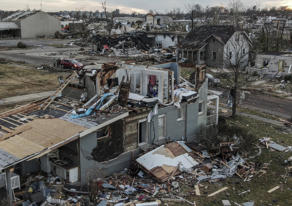 据美国媒体当地时间11日报道,美国中部6个州10日夜间遭遇至少30场龙卷风袭击,截至目前龙卷风灾害已造成超过百人死亡,肯塔基州灾情最为严重。