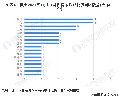 根据前瞻智慧招商系统数据,目前,全国铁路物流园区共有31个,主要分布在四川、广东、山东、山西、吉林、河南、广西等地,其中四川、广东园区数量最多,均为4个。