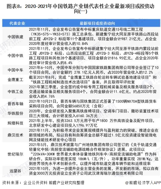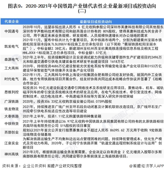 自2020年以来,铁路设备制造领域的代表性企业投资动向主要包括新增企业产能、拓展产品线布局以及通过收购、战略合作等方式完善业务布局等等。铁路行业代表性企业最新投资动向如下: