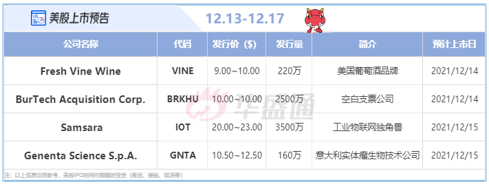 本周美股IPO市场预计将迎来4只新股,涉及葡萄酒制造、工业物联网等多个行业。
