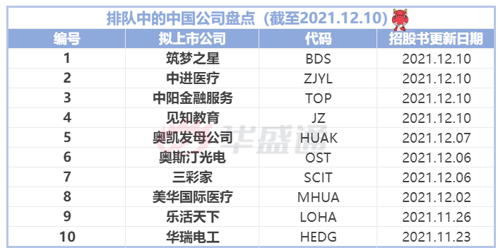 此外,还有一批正在SEC等待上市的中国公司,上周共有筑梦之星等7家中国公司更新了招股书: