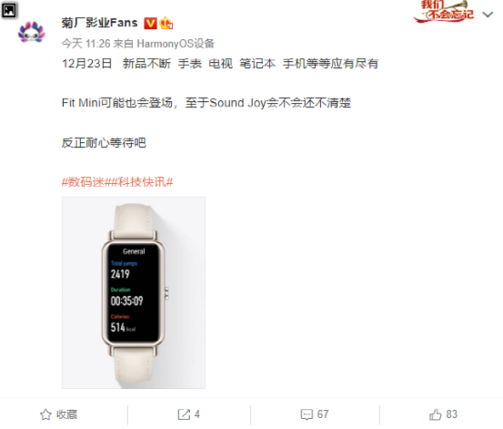 微博博主 @菊厂影业透露,华为将在 12 月 23 日举行新品发布会,产品包括手表、电视、笔记本、手机等等。