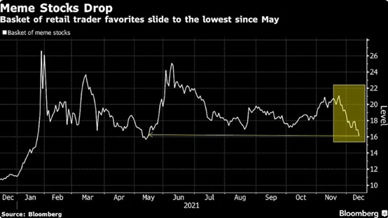 由于omicron变异毒株使市场担忧加剧,以及美联储行动的不确定性,风险资产和科技公司便一直面临压力。Meme股的波动并不是什么新鲜事,大规模的反弹和快速的抛售对这些股票来说已经成常态。