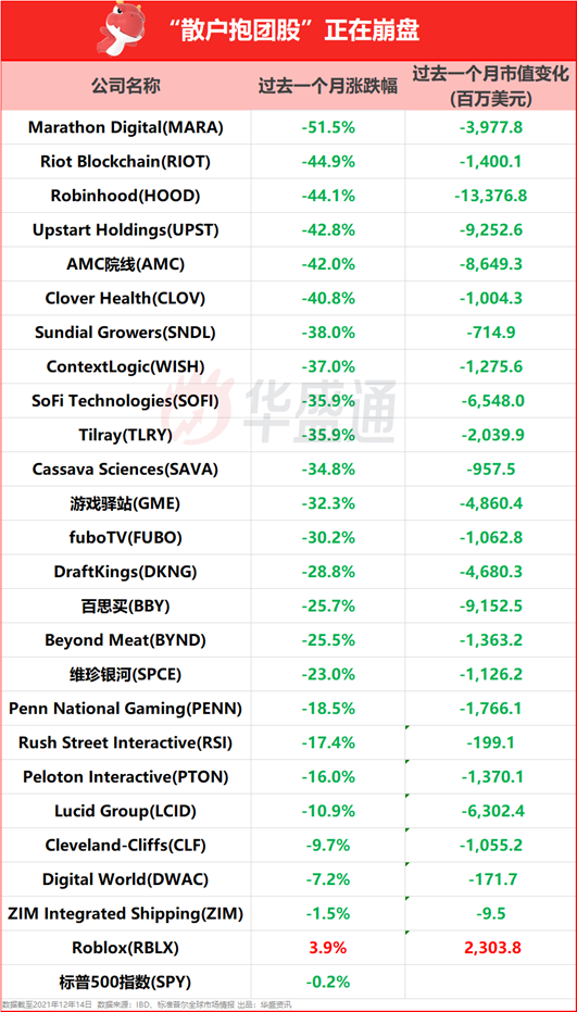 随着散户在今年最后几周从风险较高的资产转移,“散户抱团股”的损失正在增加。