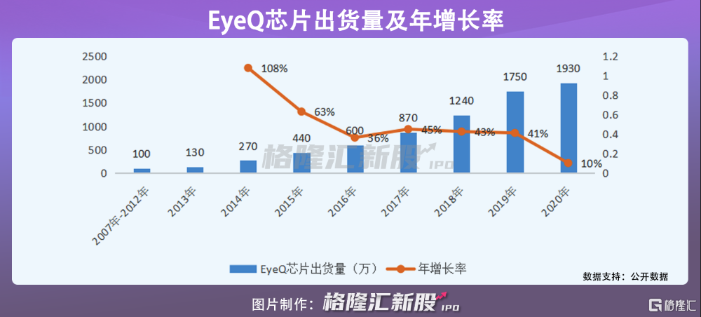 随后奥迪、丰田、日产等车企也纷纷运用,Mobileye的芯片业务得到爆发式增长,首次IPO前的2013年出货量达到130万颗。头顶光环,Mobileye于次年正式登陆美股市场。