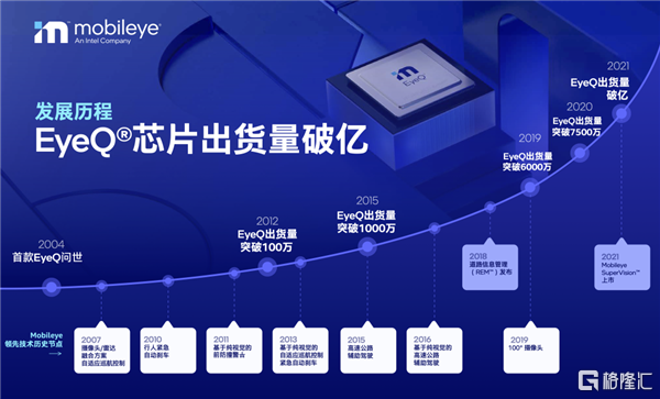 而其开发的EyeQ系列芯片在不断迭代中也占据市场主导地位,今年,Mobileye EyeQ®系统集成芯片出货量已突破1亿片。