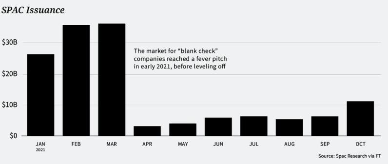 Wired Magazine的联合创始人John Battelle在2021年年初表示,特别收购公司(SPAC)在2021年式微,尽管今年年初势头强劲。被称之为“空白支票”公司的SPAC上市发行,在2021三月达到顶峰,当时发行了109个,创下历史记录。
