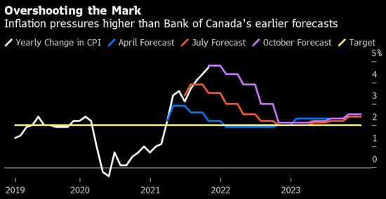 此次财政预测更新之际,加拿大的通胀率达到了二十年以来的最高水平,这令特鲁多政府面临削减支出的压力,同时还得解决食品、天然气和住房价格飙升问题。就在上述预算文件发布的前一天,Freeland重申了加拿大央行2%的通胀目标,并称此举是抵御通胀压力的堡垒。