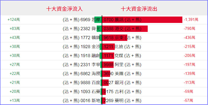 淡仓(认沽证及熊证)方面,周二思摩尔国际、舜宇光学科技等相关淡仓录得少量资金净流入;腾讯、港交所、京东相关淡仓分别约1391万、790万及436万港元资金净流出套现。