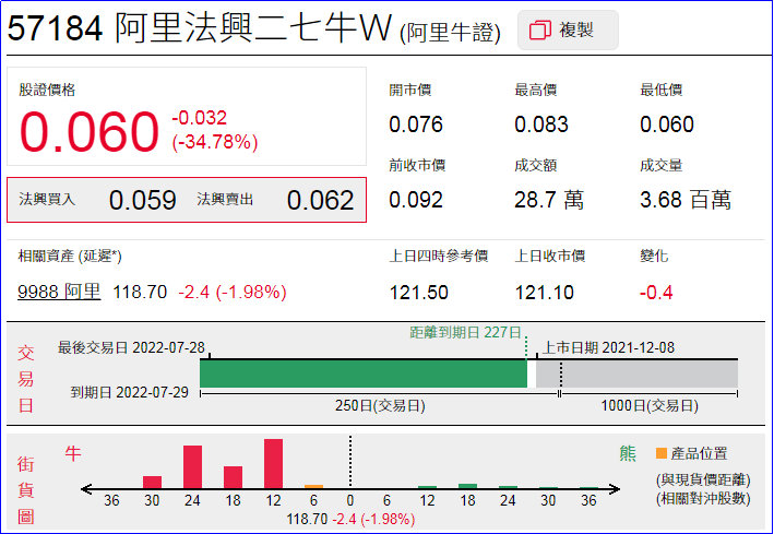 2、看错方向:阿里法兴二七牛(57184.HK),周二下跌34.78%。