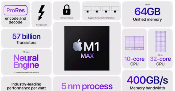 这还没有完,今年10月19日,苹果推出了M1芯片的升级版——M1 Plus、M1 Max两款芯片。据悉,苹果M1 Max在单核性能上已经超过了Intel和AMD目前的旗舰芯片,只是在多核性能上略逊色于AMD的Ryzen 9 5900X,更重要的是其集显的性能已经可以和PS5以及Xbox Series X相比,与PC独立显卡RX 6800M以及RTX 3080M处于一个档次。
