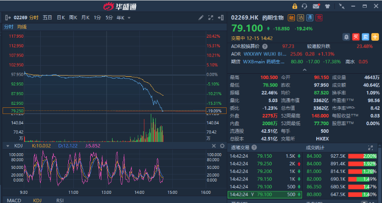华盛资讯12月15日讯,港股生物技术板块午后跌幅扩大,截至发稿,药明生物(02269)跌近20%;三叶草生物-B跌超17%;金斯瑞生物科技跌超14%;昭衍新药跌11.39%;康龙化成(03759)跌11.33%;药明康德(02359)跌超11%。