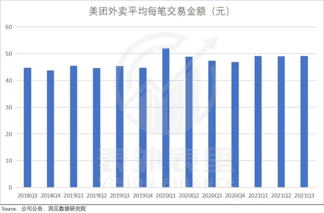 可两家整体客单价,却没有太大的变化。如下图,2021年以来,美团外卖每笔交易金额几乎持平。