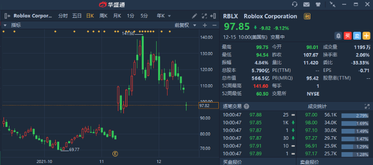 截至发稿,“元宇宙第一股”Roblox大跌9%,此前公布11月主要运营指标,预计日活用户平均订阅费用4.21-4.27美元,同比下滑8-9%。