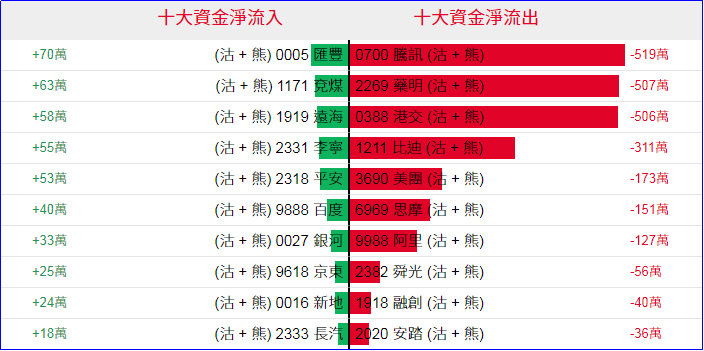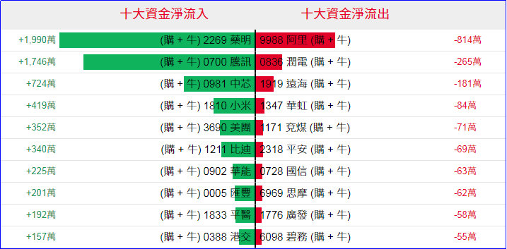 淡仓(认沽证及熊证)方面,周三腾讯控股、药明生物、港交所、比亚迪股份相关淡仓均录得部分资金净流出套现;净流入资金数据相对清淡。