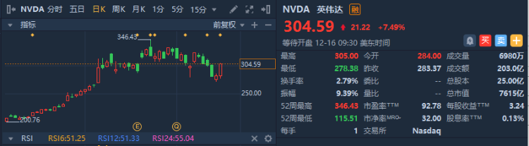 备受关注的美联储议息会议靴子落地,美联储如市场预期加速taper(逐步缩减量化宽松),会议后科技股录得上涨。周三英伟达公司 $NVDA 股价大涨7.49%,收于304.59美元/股。昨日最新大行评级方面,KeyBanc Capital维持对其目标价在350美元/股不变,给予其“增持”评级。此前花旗集团 $C 发布的2022年首选的五大芯片股榜单中,英伟达位居第三,前二是应用材料 $AMAT 和林氏研究(Lam Research) $LRCX 。