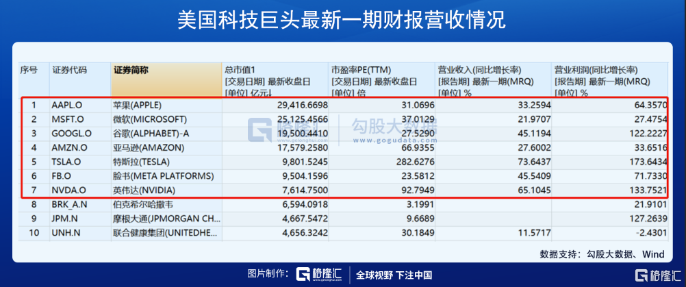 业绩也还继续在稳增长:亚马逊今年前三季度营收增长27.6%,利润增长34.96%;苹果最新一期财报营收增长33.23%,净利润增长64.92%;微软最新一期财报营收增长21.97%,净利润增长47.59%等等。这些巨头的增速虽然不是太夸张,但非常稳健,且不算低。