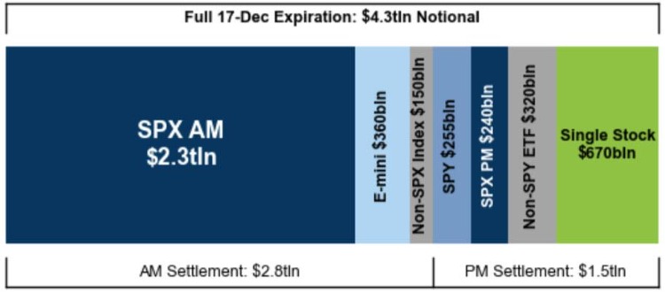 高盛和SpotGamma网站发出警告,交易员们将准备迎接年末动荡的周五,也是今年美国最后一个“四巫日”。