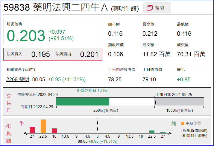 1、强势轮证:药明法兴二四牛(59838.HK),周四大涨91.51%;