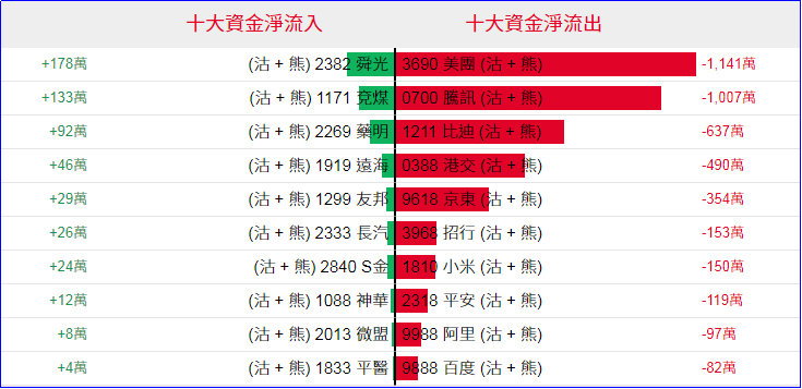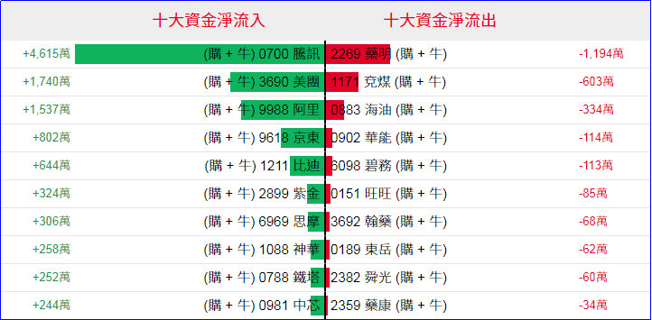 好仓(认购证及牛证)方面,周四腾讯控股、美团、阿里巴巴、京东集团等相关好仓分别约4615万、1740万、1537万及802万港元资金净流入部署,比亚迪股份、紫金矿业、思摩尔国际等好仓也见资金净流入;药明生物相关好仓单日约1194万港元资金净流出套现,兖州煤业股份、中海油等相关好仓也见资金获利套现。