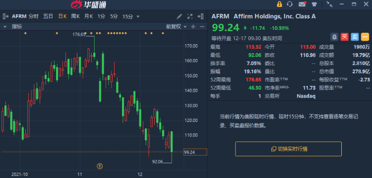 周四Affirm收盘于99.24美元。
