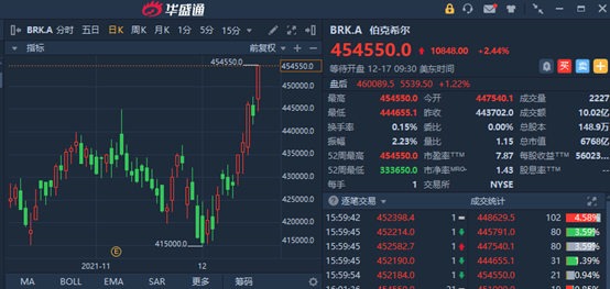 科技股没有扛住加息前景,然而“股神”巴菲特的伯克希尔却逆势上涨,创下历史新高,周四大涨2.44%,近5个交易日累计涨幅达6.10%,市值逼近7000亿美元。